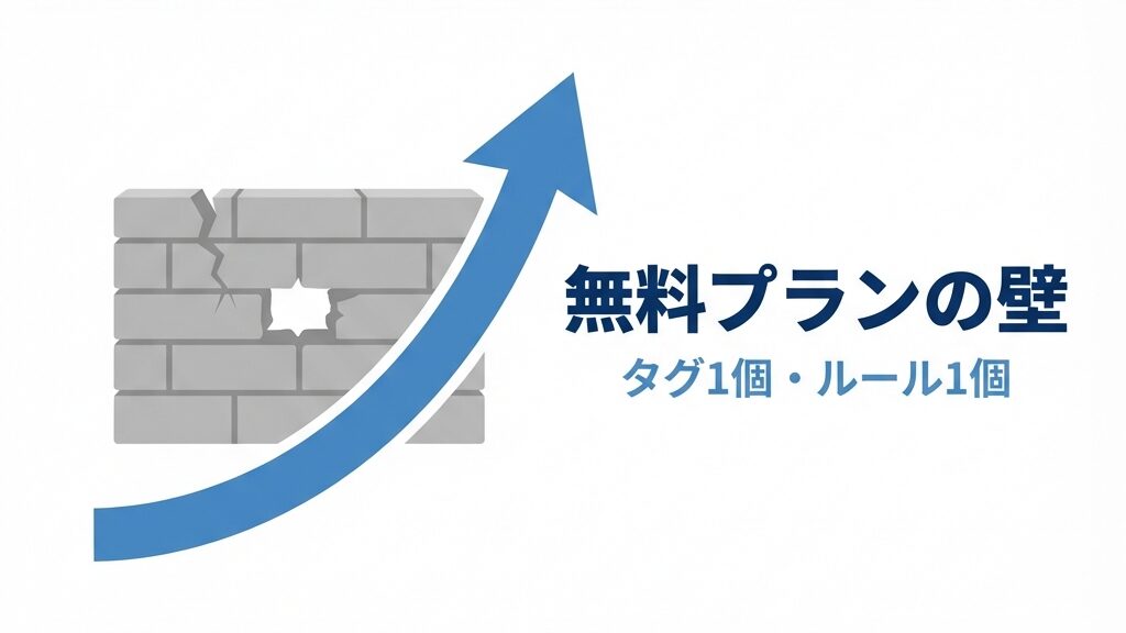 ただ、実はこの無料プランには、「タグは1つだけ」「自動化ルールも1つだけ」といった、ちょっと厳しい制限(クセ)があるんです。