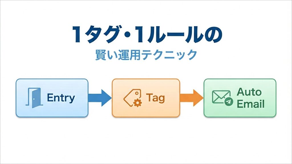 これで、「登録した瞬間に、タグが付いて、ステップメールが流れ始める」という完全自動化が、たった1つのルール枠で実現できました。すごくないですか?